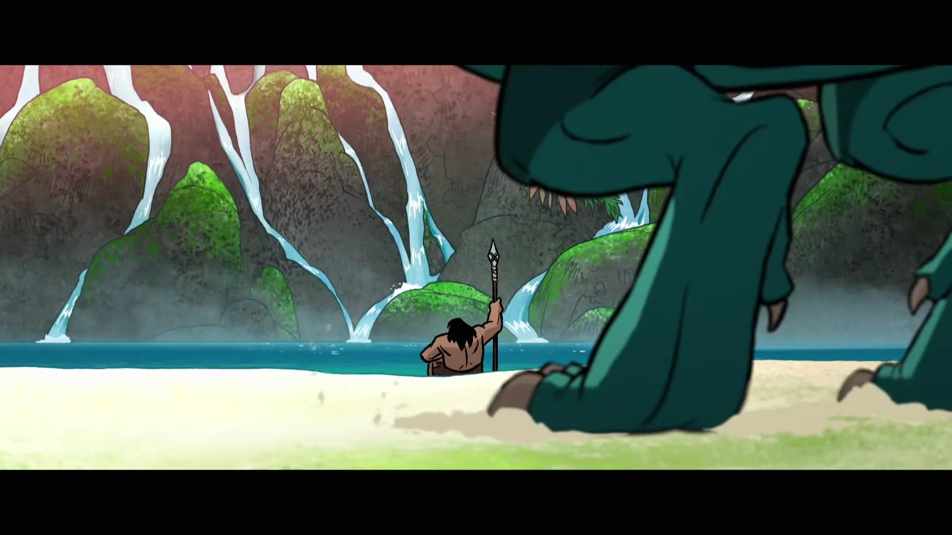 Кап'ё і Клык знаходзяць вадаём у джунглях, дзе купаюцца, адпачываюць і ловяць рыбу. Ля вады на іх нападае і выкрадае зграя малпачалавекаў.