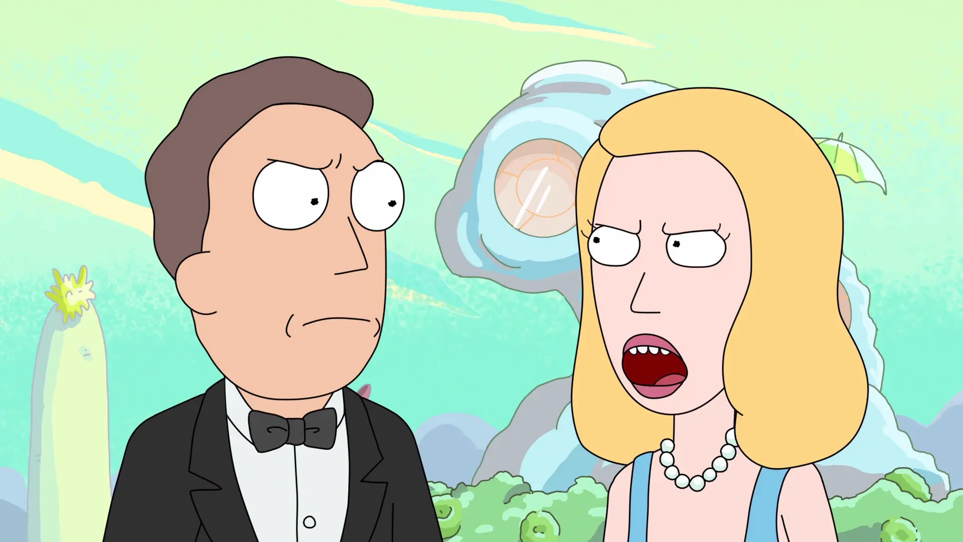 OriginalКалі Джэры выпадкова трапляе на планету, дзе адбываецца вяселле Птушкачалавека і Тэмі, уся сям'я прысутнічае на няўдалай цырымоніі.