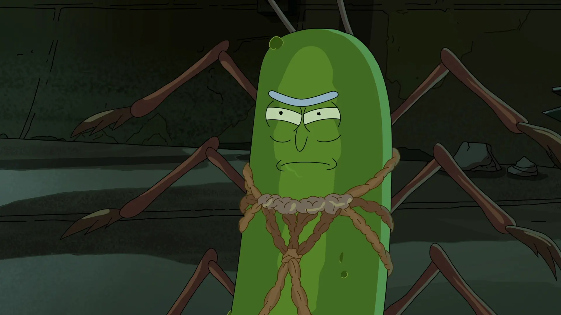 Рык ператвараецца ў салёнага агурка, пакуль астатнія члены сям'і ходзяць на тэрапію. Цяпер Рыку трэба прыдумаць, як перастаць быць салёным агурком.
