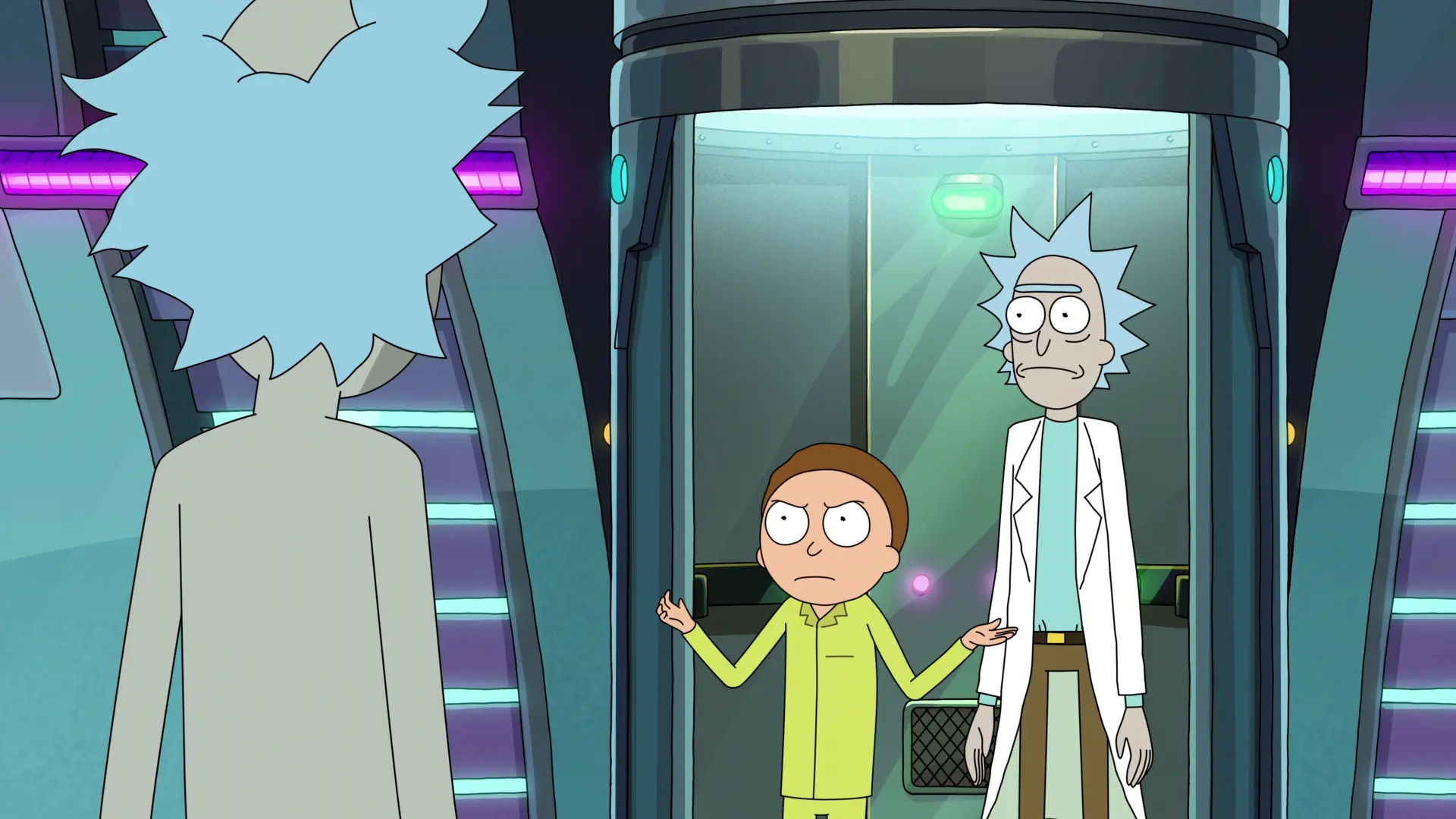 Рык дорыць Морці святую рэліквію - светлавы-меч. Але ён падае вертыкальна і пачынае праразаць Зямлю наскрозь. Прэзідэнт ЗША, робат-Рык, Рык Prime, Італія - тут.