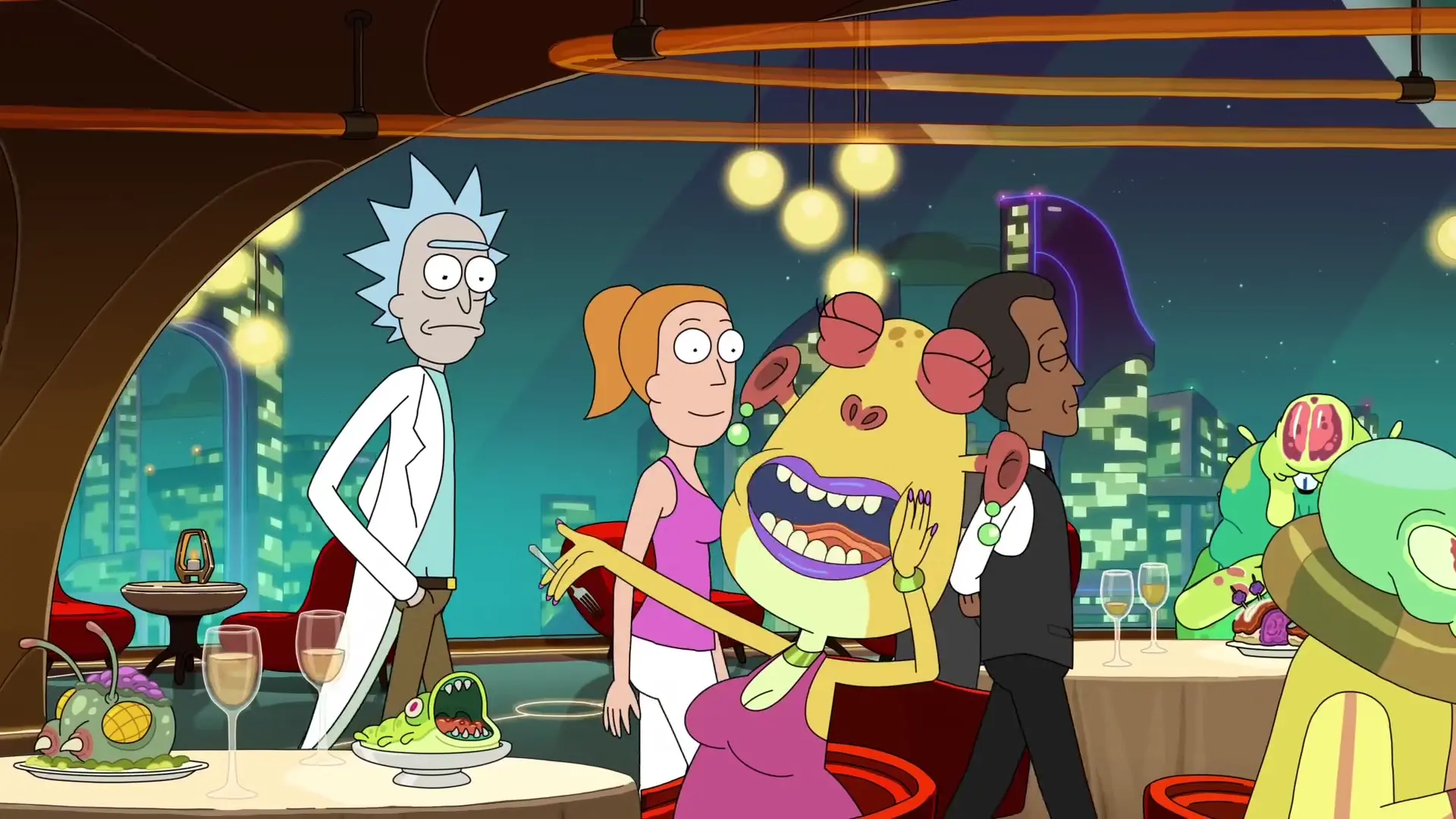 Морці сустракае старога знаёмага, які называе яго «татачкай». Самэр і Рык ідуць у дарагі рэстаран, дзе ўсё ідзе не па плане. І так, Морці Джуніар вяртаецца.