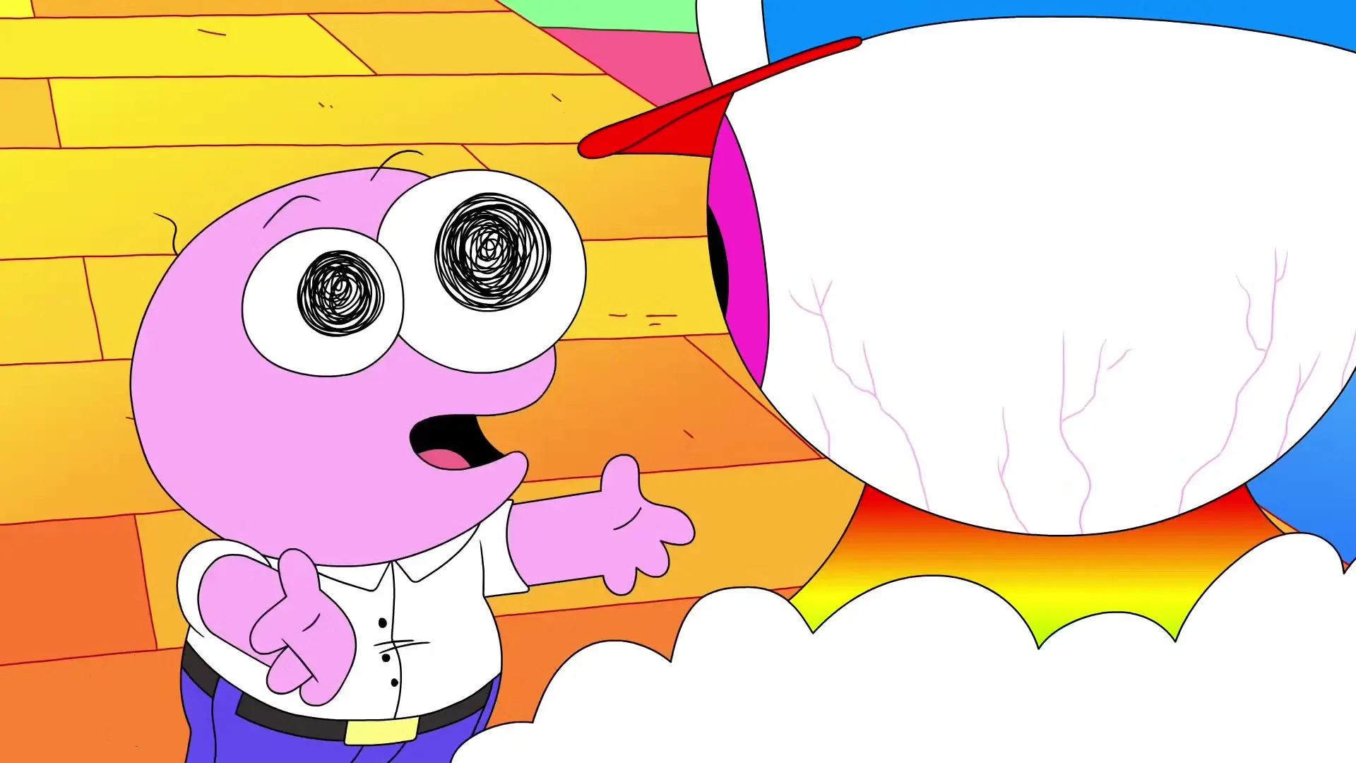 OriginalТайлер звольнены. Пім і Бос едуць у Спамтопію па чароўны камень, дзе нельга глядзець у вочы. Чарлі і Алан спрачаюцца пра мінулае, Глеп фарбуецца, а Джэйсан... ну, скажам так, ён больш не крычыць.